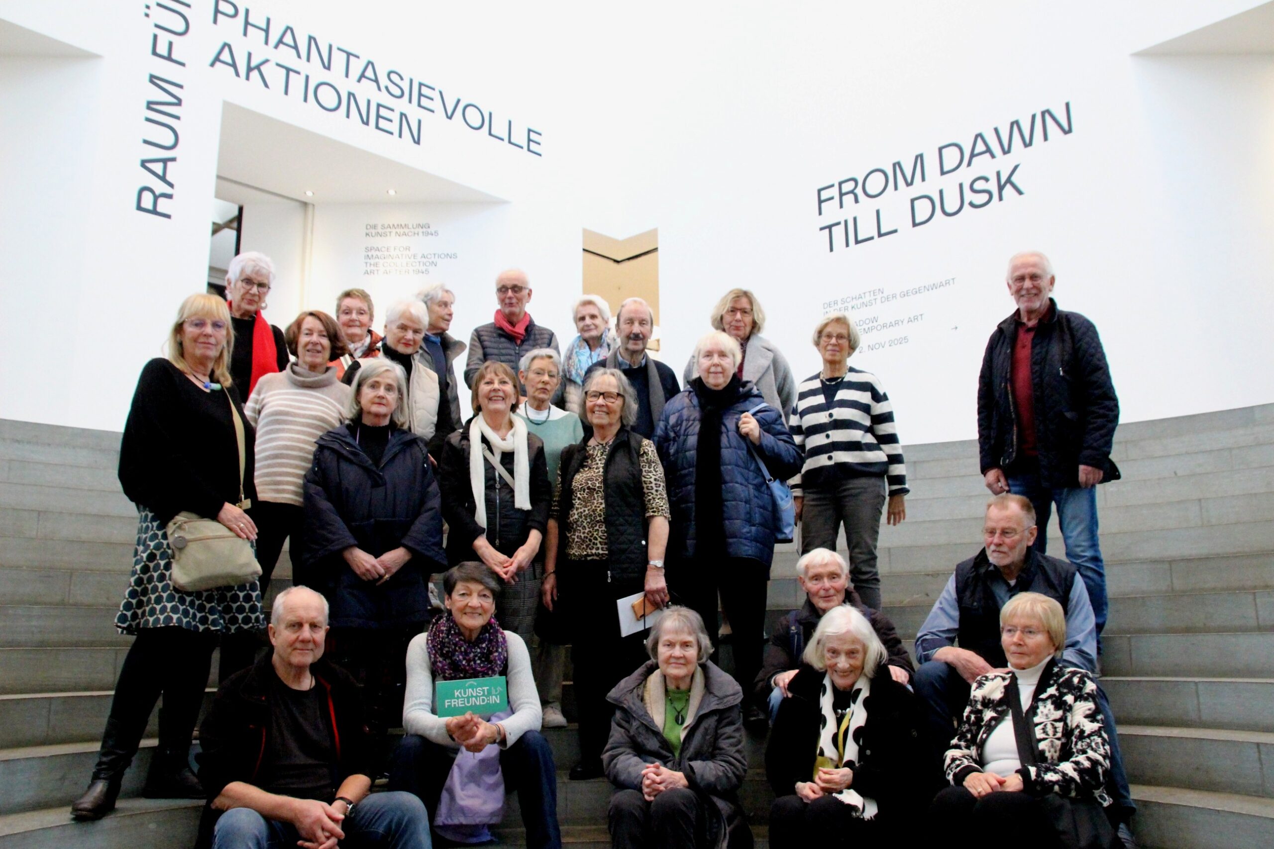Zwei beeindruckende Ausstellungen haben die Kunstfreunde Lüdenscheid bei einem Ausflug nach Bonn besucht: Die Bundeskunsthalle hat dem Regisseur Wim Wenders zum 80. Geburtstag die Schau „Die Kunst des Sehens" gewidmet. Die „bildmächtige" Ausstellung stelle das künstlerische, visuelle Gesamtwerk des Filmemachers und Künstlers vor, hieß es in der Ankündigung. „Neben dem Bewegtbild in umfangreichen Filmkompilationen zählen dazu seine großformatigen Farbfotografien, kleinere schwarzweiße Fotoarbeiten, Polaroids, Collagen, Aquarelle und Zeichnungen aus den verschiedensten Arbeitsphasen, biografische und archivalische Dokumente." Dabei handelt es sich um Produktionsunterlagen, Drehbücher und Briefe. Ergänzend zeigt die Ausstellung Fotomaterial, das den Regisseur bei der Arbeit hinter den Filmszenen zeigt. Der Vorsitzende der Kunstfreunde Arnd Fiedler zeigte sich nach dem Besuch mit den Kunstfreunden beeindruckt von der Ausstellung, die noch bis zum 11. Januar 2026 in der Bundeskunsthalle in Bonn zu sehen ist. In unmittelbarer Nachbarschaft steht an der Museumsmeile das Bonner Kunstmuseum. Dort ging die Ausstellung „From Dawn Till Dusk" dem Phänomen des Schattens in der Kunst der Gegenwart nach. Dort fanden sich die Kunstfreunde aus der Stadt des Lichts in einem Reich der Schatten wieder, die allerdings immer auf das Licht zurückwiesen. Schon das erste Werk sorgte für Verblüffung bei den Besuchern aus Lüdenscheid: Die Künstlerin Nadia Kaabi-Linke zauberte den Schatten eines Hochsitzes an die Wand, ohne dass es ein beleuchtetes Objekt gibt, das diesen Schatten wirft. Den Titel der Arbeit „All along the Watchtower" entlehnte die Künstlerin einem Lied von Bob Dylan, das durch Jimi Hendrix bekannt wurde. Die Eindrücke blieben beeindruckend vielfältig: Die iranische Künstlerin Farideh Lashai ließ durch das Licht einer Punktleuchte Figuren auf zuvor menschenleeren Miniaturen aus Francisco de Goyas Grafikserie „Die Schrecken des Krieges" erscheinen. Der südafrikanische Künstler William Kentridge gestaltete eine in langer Endlosschleife dahinziehende Prozession von Schattengestalten. Und Hans-Peter Feldmann beleuchtete Spielzeug, Nippes und touristische Erinnerungsstücke auf fünf Drehscheiben, was ein wildes Wechselspiel von Schatten unterschiedlichster Form und Gestalt hervorrief. Ähnliches konnte man auch schon einmal bei den Lüdenscheider Lichtrouten bewundern.
