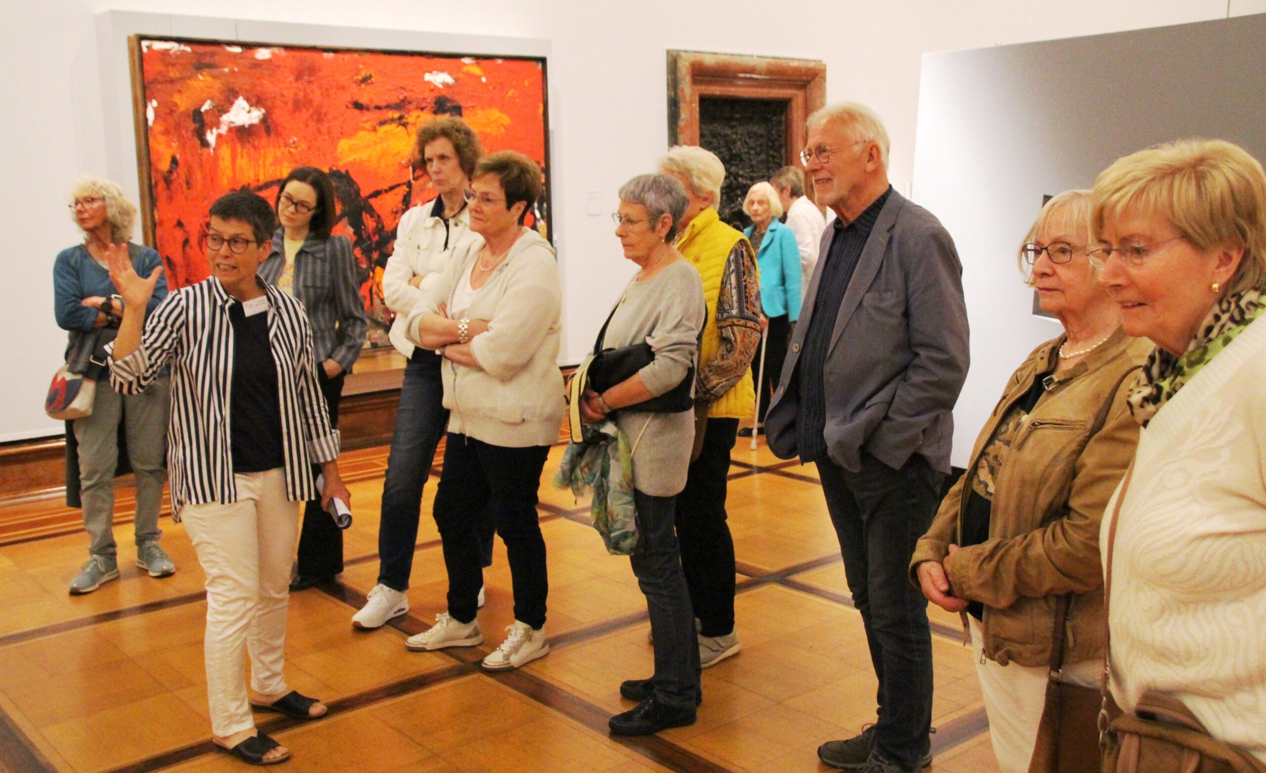 Vor einigen Monaten hatten die Kunstfreunde Lüdenscheid (KFL) das Vergnügen, in Bonn das Wohnhaus August Mackes und das daran angefügte neue Macke-Museum zu besichtigen. Folgerichtig ging es nun zu den sauerländischen Wurzeln des berühmten expressionistischen Malers. Der architektonisch hoch interessante durchaus eigenwillige und nach Meinung mancher Teilnehmerinnen und Teilnehmer in der Wegeführung noch etwas verwirrende Anbau des Sauerland-Museums in Arnsberg feiert seine Eröffnung mit der ambitionierten Ausstellung „August Macke – Ganz nah“. Die Kunstfreunde durften an diesem Tag sogar besonders nah an den familiären Bedingungen und Entwicklungen der Familie Macke teilhaben. Denn Dr. Til Macke, Enkel des Künstlers, war zu einem Podiumsgespräch mit der Kuratorin der Ausstellung, Frau Dr. Ina Ewers-Schultze, geladen worden und schilderte viele Einzelheiten, Daten, Fakten und auch Anekdoten ausgehend von der frühen Kindheit des in Meschede geborenen Künstlers über Stationen in Paris, am Tegernsee und schließlich Bonn bis hin zu seinem Tod gleich zu Beginn des ersten Weltkriegs. Deutlich war zu spüren, dass sich das Auditorium dieser früh ausgebuchten Veranstaltung tief in die Zeit des beginnenden 20. Jahrhunderts hineinziehen ließ. Es herrschte eine Stimmung hochkonzentrierter Aufmerksamkeit für die Ausführungen des mittlerweile achtzigjährigen Beschützers und Verwalters des großväterlichen Nachlasses. Manche für Sammlungen oder Museen hochwillkommene Schenkung ist Dr. Til Macke zu verdanken. Im Anschluss an das Gespräch ließen sich die Kunstfreunde durch die Ausstellung in den neuen Räumen führen. Gern betrachtete man die so sehr gerühmten und beliebten Aquarelle und Ölbilder des Malers, doch genauso interessiert entdeckte man früheste Zeugnisse außerordentlicher gestalterischer Begabung aus Kindheit und Jugendzeit und lauschte den umfangreichen historisch-informativen Erläuterungen zu den zahllosen zusätzlich präsentierten zeitgenössischen Dokumenten zu Mackes Lebenslauf. Kaffee, Kuchen und engagierte Gespräche in einem netten Café in der Arnsberger Altstadt beendeten diese wiederum außergewöhnliche Fahrt der Kunstfreunde hin zur Kunst.